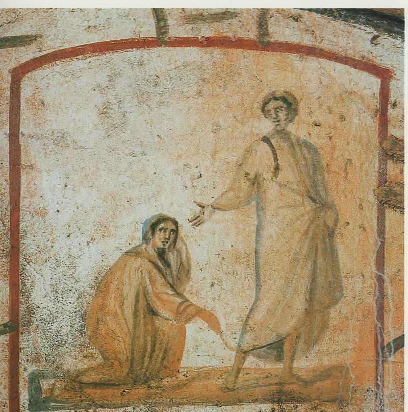 A történet egyik legkorábbi, összefoglaló magyarázatát Órigenésztől (185 – 253) ismerjük (Frg. Lc. 125.). Krisztus először a zsinagóga elöljárójának lányához indult,