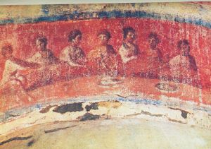 aminek előképe a Tiberiásnál történt kenyérszaporítás, ahol az emberek „a kenyeret ették, miután az Úr hálát adott” (eukharisztézantosz tou Küriou – Jn 6,23, vö. 6,11). Természetesen ugyanígy az utolsó vacsorán teljesedik be a kánai mennyegzőn végbement csoda, s minden bizonnyal éppen erre utal Jézus rejtélyes válasza Mária megjegyzésére, mely szerint „nincs boruk”: „Mi dolgod, s mi dolgom ezzel, asszony? Még nem jött el az én órám” (Jn 2,3), tudniillik szenvedésének órája.